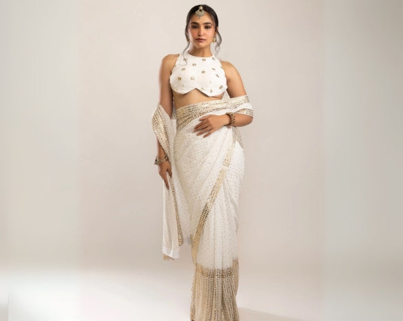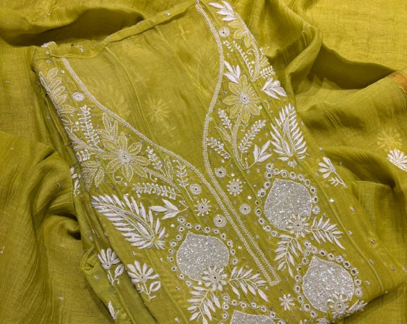 Dyeable Chanderi Mul Chikankari & Mukaish Kurta & Dupatta Set