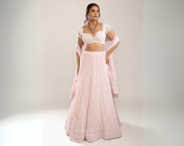 Soft Pink Pure & Premium Organza Silk Chikankari Kurta & Dupatta Fabric